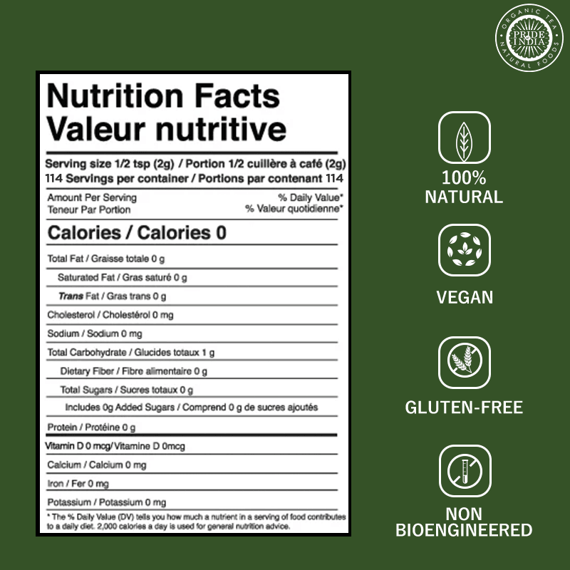 Uncompromised Quality: Our Neem Herb Powder stands out with its commitment to purity. Our product is gluten-free, non-bioengineered, cholesterol-free, fat-free, and is a product of India. Enjoy peace of mind knowing that you're using a safe, high-quality ingredient in your cooking.